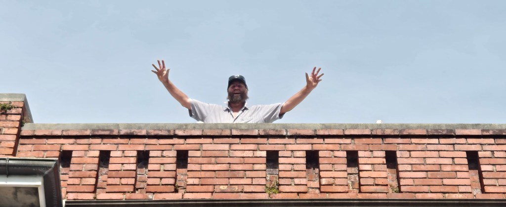 May as well post a pick from the trip – it’s on the roof of the cheap-ish room I managed to wangle. PS I am not sure if I look Moses-like or Dictator-like)